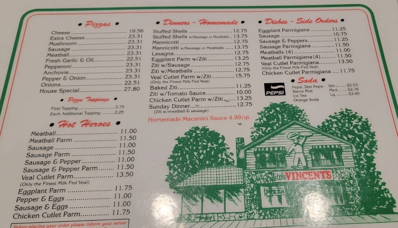Welcome to Little Vincent's Pizza Restaurant, a local favorite in Lake Ronkonkoma, New York, known for its authentic New York-style pizza and late-night dining. The Little Vincent's Pizza Restaurant menu offers a variety of freshly made pizzas, classic slices, and delicious comfort foods prepared with quality ingredients. Whether you're stopping by for a quick bite or enjoying a casual meal with friends, this iconic pizza spot delivers great taste, generous portions, and a true New York pizza experience.